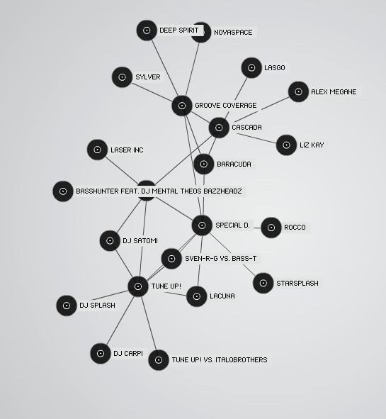 http://audiomap.tuneglue.net/А это вот так мя стал прыгать от только одной группы Cascada и вырастил такую паутину. Но предела нет х3 Можно так бесконечное кол-во набирать.